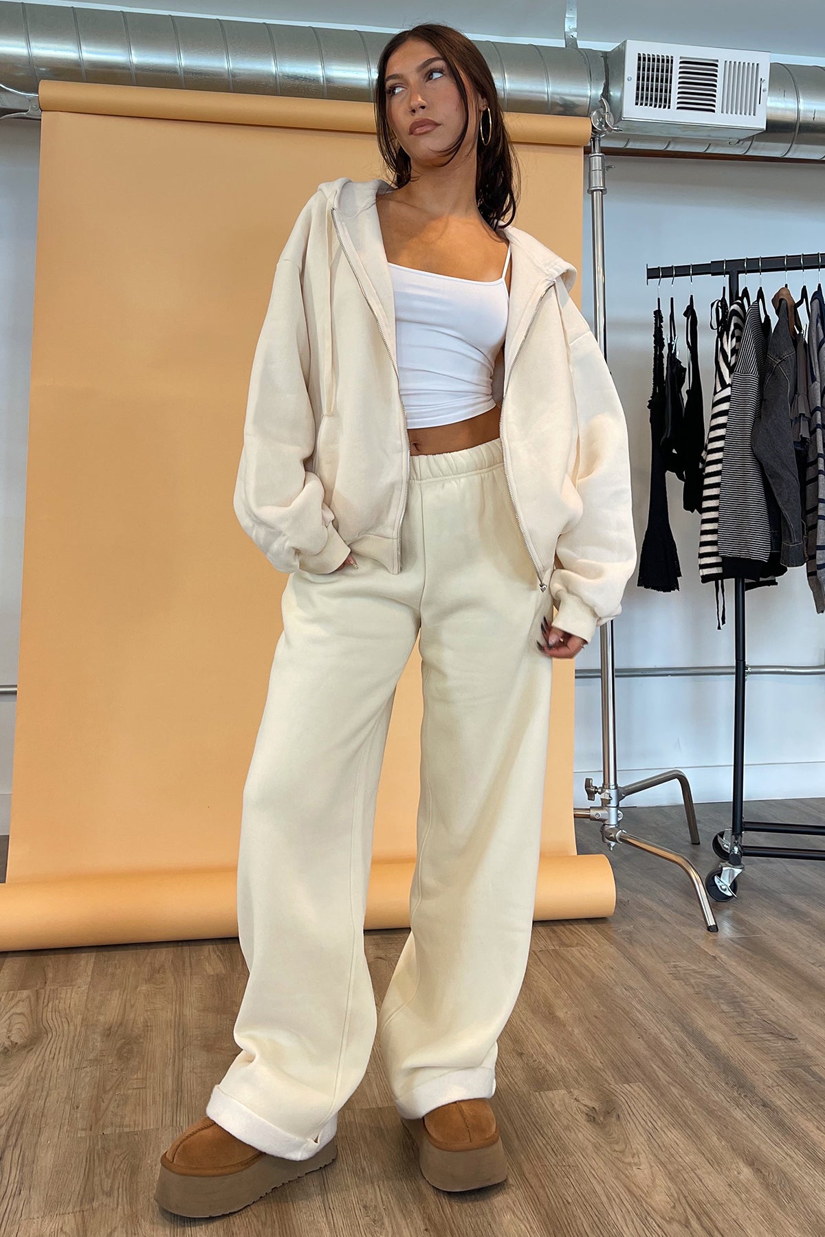 Please note: For this specific color ‘Ecru’, the hoodie and sweats are slightly different colors. The difference is very subtle and not noticeable in many lights, but if you want a perfect color matching set this one is not exact.
