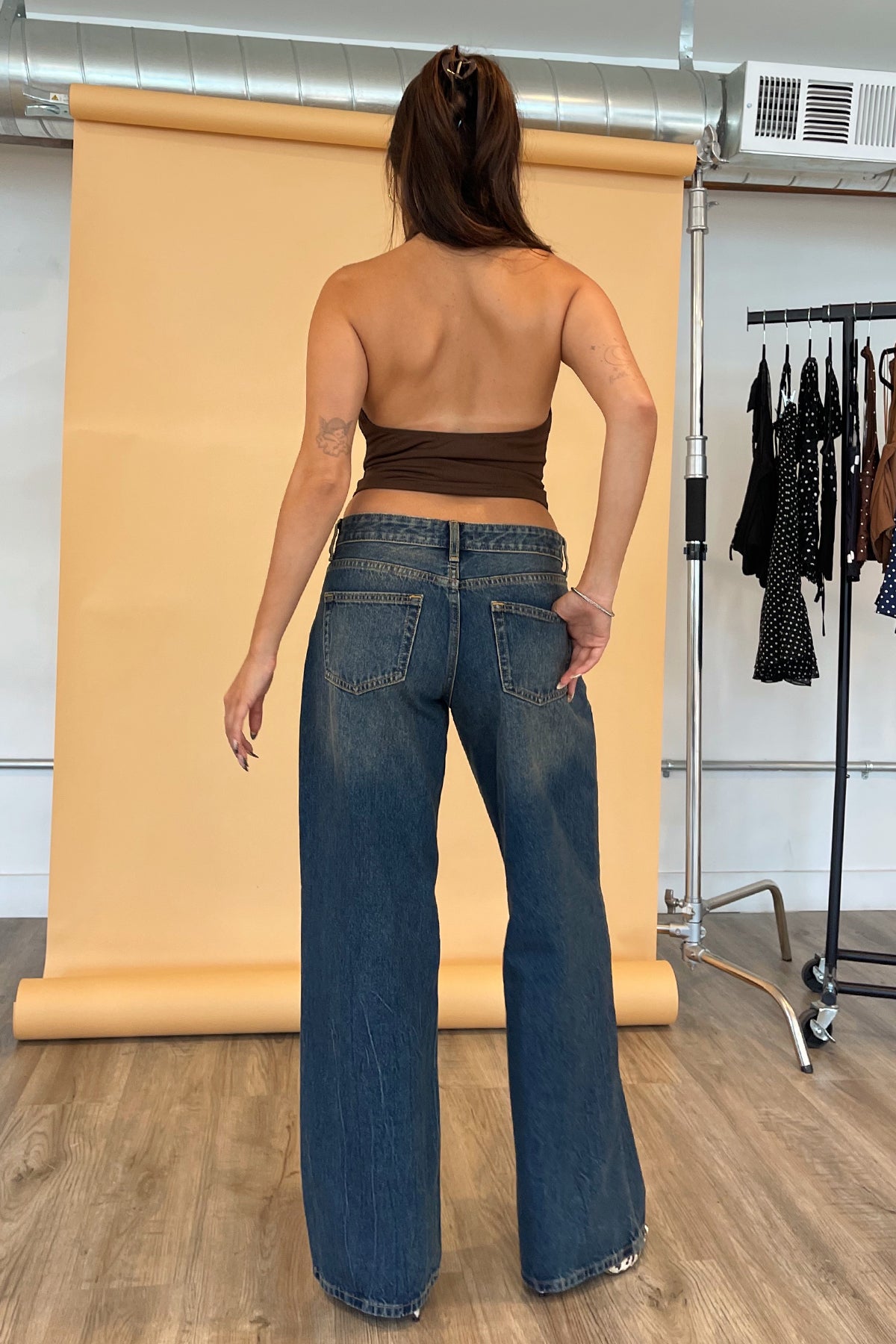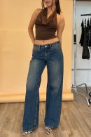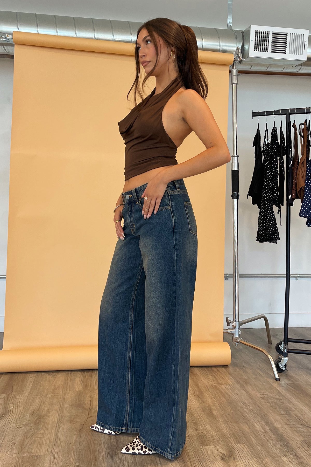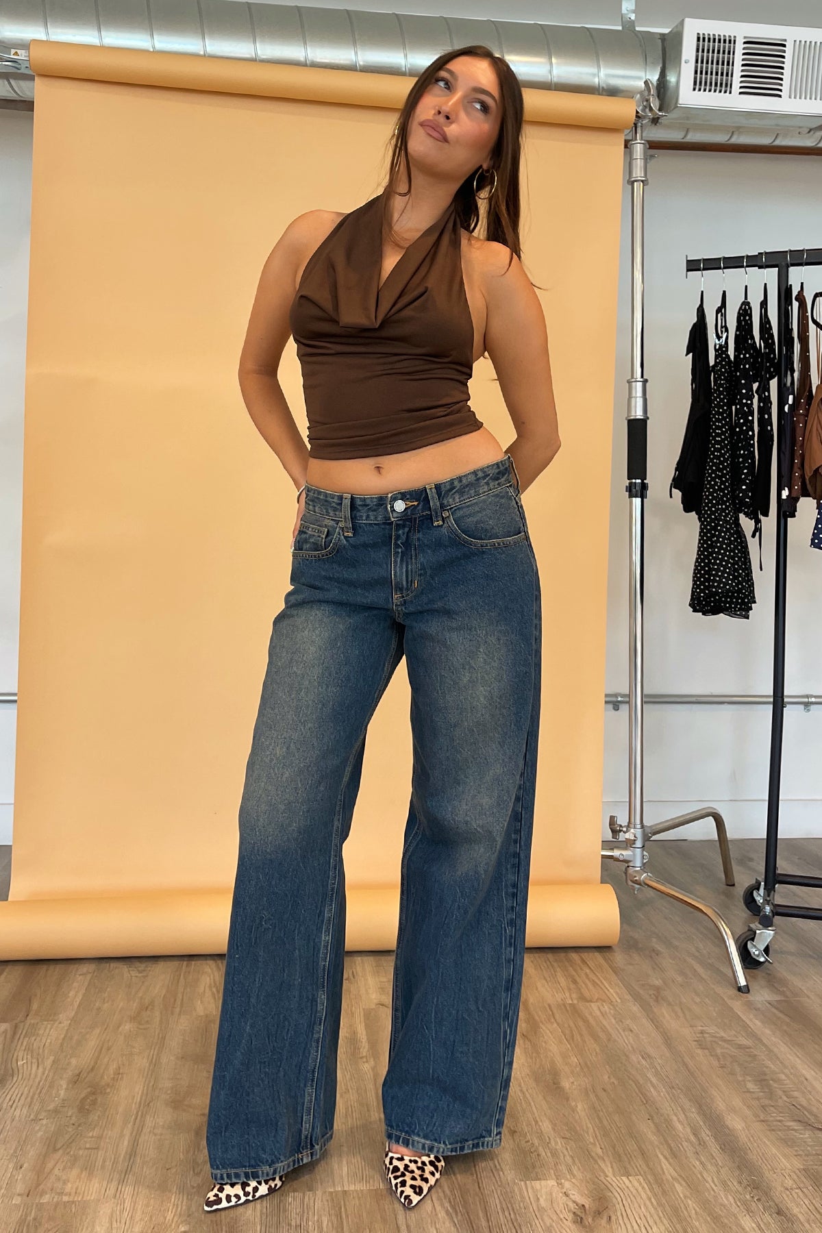 Styled with the Monet Brown Cowl Neck Halter Top.